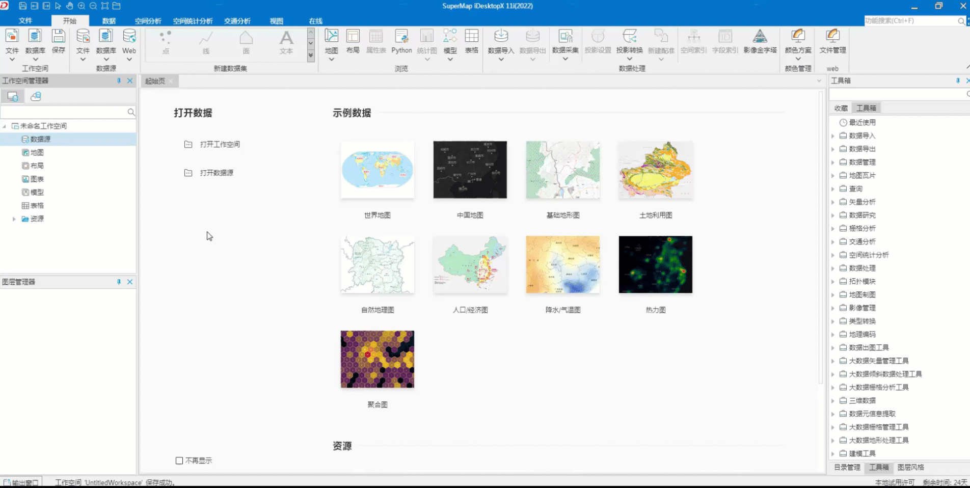 云端桌面具备强大的数据编辑与管理、矢量/栅格处理、空间分析等核心GIS能力,可充分挖掘数据信息,交互与SuperMap桌面GIS软件一致。